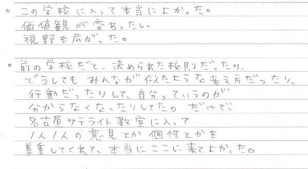 通信制 代々木高等学校名古屋サテライト教室 生徒の声No.16 通信制 代々木高等学校名古屋サテライト教室 生徒の声No.16 通信制 代々木高等学校名古屋サテライト教室 生徒の声No.16
